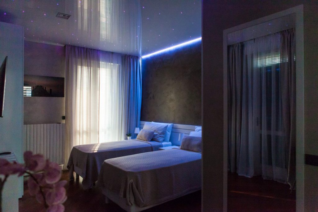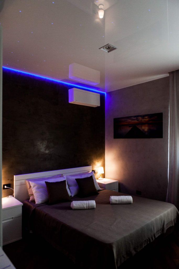 Gli arredi raffinati, il letto rotondo con retro illuminazione led, soffitto con cielo stellato che regala alla suite' un' atmosfera unica di lusso ed intima allo stesso tempo.